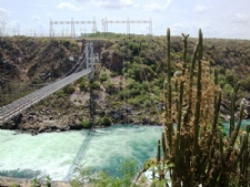 Entre paredões alagados pela mão do homem, correm as águas esverdeadas do Velho Chico levando desenvolvimento para o país. A visita ao complexo é feita com guia especializado e tão logo adentra o complexo hidrelétrico se tem um panorama de toda a visita: barragens, cachoeiras, comportas, torre de transmissões de energia, pontes, cavernas, máq O complexo é muito mais. As comportas de Capuxú são as primeiras a serem visitadas e se tiver sorte e Deus ajudar com as chuvas no leito da barragem de Moxotó observará grande fluxo de água. Do primeiro mirante avista parte do cânion do São Francisco, vegetação de caatinga, muitas craibeiras floridas e uma grande queda d’água. Mais adiante o observatório da Chesf está fechado para visitação pública, porém, é de admirar como deve ser a vista de lá de cima. Percorre-se mais um pouco a pé por um passeio onde os sagüis dão as boas-vindas. As águas Do mirante em frente ao observatório ver-se a ponte pênsil, fechada para visitação pública, e diversos fios presos às torres de transmissão de energia, que mais parecem monstros gigantes, tamanha a magnitude. É hora de chegar mais perto desta aventura e conhecer os maquinários. Percorre-se um trajeto de automóvel e chega-se na entrada dos túneis abaixo da represa, que leva aos seis geradores de energia da hidrelétrica de Paulo Afonso IV. Para se ter idéia, a Paulo Afonso VI junta-se a I, II, III e hidrelétrica de Afonso Sales, constituindo uma soma de 1.524.000KW de potência O guia explica todo o processo de geração de energia e mostra que a hidrelétrica de Paulo Afonso é uma das maiores obras de engenharia do país, por ser a primeira construída através dos desníveis do rio São Francisco, apesar de ser uma hidrelétrica tecnicamente ainda mecânica, diferente de Xingo, considerada uma das mais modernas do país. As explicações técnicas ficam para trás e logo se observa mais bioma de caatinga, corredeiras, até chegar ao mirante da cachoeira de Paulo Afonso. Num dos jardins está a estátua do poeta Castro Alves, em bronze, bem como uma estrofe de seu poema “Espumas Flutuantes” em homenagem à cachoeira. Outra placa de bronze homenageia a visita de D. Pedro II, em 1859 e mais recente, em homenagem aos 50 anos da visit Por conta do reflexo da luz do sol nas pedras do cânion, as águas do Chico parecem ser bem mais verdes nesta localidade. Do mirante avista-se a primeira usina hidrelétrica construída por Delmiro Gouveia em 1913, a “Angiquinho”. À esquerda estão as belas quedas d”água da cachoeira de Paulo Afonso, com aproximadamente 100 metros de altura, apreciada apenas em épocas programadas, quando as comportas da barragem são abertas. Com a construção das usinas, as águas que formam a cachoeira foram represadas permanecendo apenas um pequeno volume, o que permite observar melhor o belo conjunto de rochas polidas pelas águas há centenas de anos. Avista-se, ainda, o cânion do rio São Francisco, com seus p Que mais? É hora de “criar sustança” e um bom churrasquinho de bode às margens da represa é uma pedida. Na volta do passeio, que dura em média 2h30, passa-se pelo parque Belvedere, onde a prefeitura colocou a disposição acesso à internet gratuito e há vários quiosques populares servido a iguaria. O passeio está completo. Leva-se um pouco da história do Velho Chico e da distribuição de energia no país, do povo do sertão baiano e muitas fotos de paisagens exuberantes de uma região onde o paradoxo da grandiosidade das águas e a escassez dela faz parte do cotidiano. Só vivenciando para acreditar. Como chegar Partindo de Aracaju, há duas maneiras de se chegar na Capital da Energia: s A dica é ir pela BR 101, por Itabaiana, e seguir a direita no trevo que dar acesso para Nossa Senhora das Dores. Passa-se por Nossa Senhora da Glória pela Rota do Sertão e segue-se até Canindé do São Francisco. No acesso da cidade, vira-se a esquerda para Capim Grosso. A estrada está em boas condições até a divisa com a Bahia. Ao passar da divisa a BA 210 está em condições bem precárias, mas a vista dos denominados sítios arqueológicos da Chesf é bem interessante, com muitas craibeiras e pedras gigantes. Se quiser seguir por Delmiro Gouveia entra pela sede de Canindé do São Francisco até a denominada prainha. Segue-se pela ponte de divisa SE/AL. A rodovia AL 225 que passa por Piranhas (AL) é bem sinalizada e está em boas condições.A paisagem enche os olhos dos turistas que visitam o complexo hidrelétrico de Paulo Afonso, mas as águas verdes do rio São Francisco têm um poder ainda maior do que somente hipnotizar por sua beleza: leva energia elétrica para quase que 70% dos domicílios nordestinos e corresponde a 36% da potência total instalada pela Chesf.