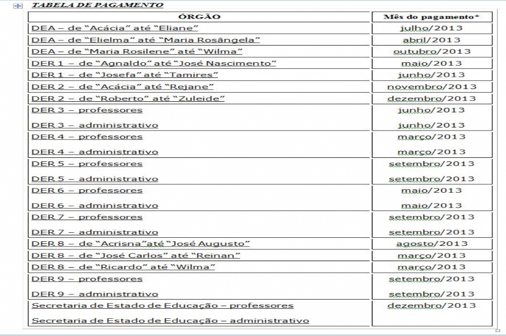 A SEED vai pagar os R$ 2,7 milhões de indenização em 12 parcelas de R$ 226.139,98 cada uma. As duas primeiras parcelas pagas ontem foram no valor total de R$ 452.279,96. O pagamento executado neste mês de março vai beneficiar os trabalhadores que exerceram suas funções nas Diretorias Regionais de Educação (DRE 4), sediada em Japaratuba, e (DRE 8), que compreende os municípios da Grande Aracaju. Na DRE 4 foram beneficiados 18 professores e 24 trabalhadores da área administrativa. Na DRE 8 foram beneficiados 131 trabalhadores, entre professores e pessoal administrativo.
