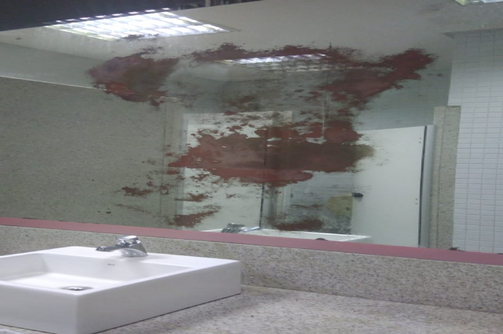 | A situação do espelho do banheiro feminino do Burger King do Shopping Jardins |