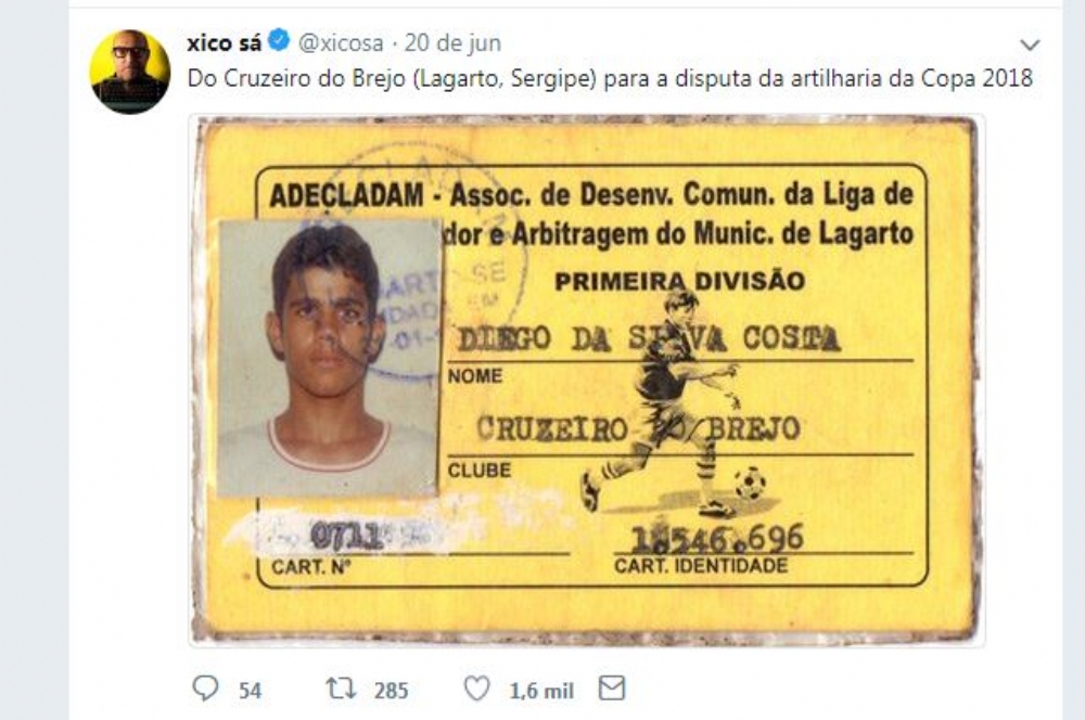 www.twitter.com/xicosa Do Cruzeiro do Brejo (Lagarto, Sergipe) para a disputa da artilharia da Copa 2018.