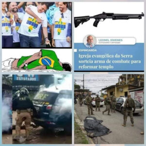 A DESPEITO DOS FREQUENTES MASSACRES DA POLÍTICA DE CONFRONTO DAS FORÇAS DE SEGURANÇA BRASILEIRAS E DOS RECORRENTES E LETAIS ATAQUES DE INSANOS E CARNICEIROS “LOBOS SOLITÁTIOS” CONTRA INDEFESAS COMUNIDADES ESCOLARES, MORMENTE, NOS ESTADOS UNIDOS DA AMÉRICA, ONDE SE PRATICA, A MANCHEIA, A AUTODESTRUTIVA CULTURA DE ARMAMENTO DA POPULAÇÃO CIVIL, AQUI, ENTRE NÓS, ESSA SUICIDA CULTURA TEM SIDO, DIUTURNAMENTE, APOLOGIZADA, DEFENDIDA E PROFESSADA, SOB OS AUSPÍCIOS DO ATUAL DESGOVERNO FEDERAL DA PROGRESSIVA “PÁTRIA ARMADA, BRASIL”.