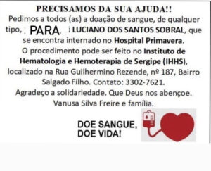 Hospital Universitário não realiza procedimento cirúrgico de caráter urgente por falta de insumos O vereador por Aracaju, Pastor Diego, tem acompanhado de perto a situação da paciente Elaine, moradora do bairro Santa Maria, que necessita da retirada de um dreno. Há trinta dias que ela recorre à Secretaria Municipal de Saúde e o Hospital Universitário, que é contratado pelo poder público para fazer o procedimento, porém não consegue uma definição.