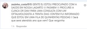 Lagarto: denúncia de idoso, de que há lista com 500 pacientes aguardando consulta oftalmológica, ainda repercute nas redes sociais Fonte: O Bolo é Grande: Na semana