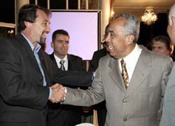 uma simples questão de prudência ética: não é nada demais que essas autoridades votem no candidato da sua preferência, seja ele qual for, mas emprestar a sua imagem participando de eventos públicos pode denotar apoio político ostensivo. Mas nesse caso o absurdo é levado ao extremo, porque o evento em questão foi abrigado pelo Conselho Federal de Imóveis. Ou seja, uma autarquia federal que resolveu condecorar o candidato ao quarto mandato com comenda “JK” e “Colibri de Turmalina”, em um ato cuja natureza eleitoral não pode ser negada na última sexta-feira. Totalmente na contramão da legislação eleitoral. Mais recentemente, por bem menos a Procuradoria da República abriu procedimento contra o Conselho Federal de Odontologia por conta da presença de João Alves numa palestra naquela autarquia. E o evento foi para o candidato já que está sendo explorado (e bem) na página do candidato na Internet. Na foto o superintendente da CEF em Sergipe, Gilberto Occhi, cumprimentando João Alves na solenidade.
