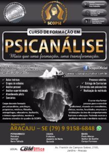 Aracaju Esse curso é destinado somente a portadores de diploma de CURSO SUPERIOR em QUALQUER ÁREA, ou que ainda esteja com a graduação EM ANDAMENTO. O curso tem como objetivo formar bons PSICANALISTAS para atenderem em consultórios e demais instituições da área de saúde e desenvolvimento humano. O corpo docente é formado por uma equipe de doutores, mestres e especialistas na área de saúde e humanas. Agende a sua entrevista pelo fone: (79) 9 9158-6848 (whatsapp). Somente 30 vagas para Aracaju. Início: 20/10/2018. Duração: 30 meses com aulas mensais. Local: Auditório da CBM Office. Taxa da entrevista seletiva: 150,00. Mensalidade: 299,00 (sem reajustes). A SCOPSI – Sociedade Contemporânea de Psicanálise, é uma das maiores instituições de formação em psicanálise do Nordeste, atuando há 11 anos na formação dos melhores psicanalistas. A mesma também é uma das poucas instituições psicanalíticas do Brasil com reconhecimento internacional. Visite nosso site.