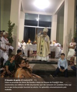 de Propriá Dom Vítor recomendou aos milhares de fiéis ali presentes que não votassem em candidato ficha suja ou no que tenha posição favorável ao aborto. Foi aplaudido entusiasticamente pela multidão.