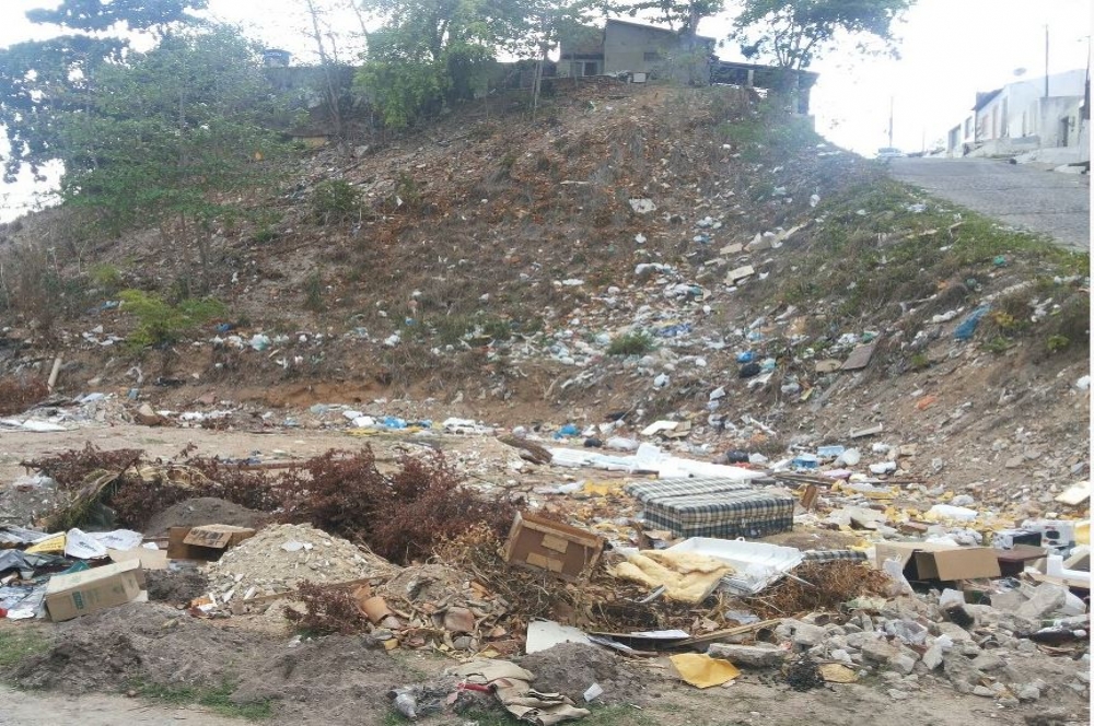 Lixeira cresce na rua Ribeirópolis, no bairro Suiça. |