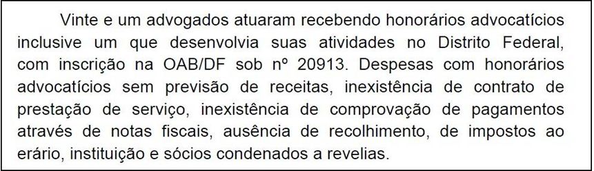 Além disso, a associação gastou, entre 2007 e 2010 a quantia de R$ 1.849.269,48. Parece muito? Pois bem, o relatório afirma que que esses gastos foram irregulares porque: