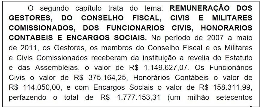 O segundo capítulo da auditoria é um pouco pior. Diz com todas as letras que nada menos que R$ 1.149.627,07 foram pagos “à revelia do Estatuto e das Assembléias” aos gestores da associação. É um bocado de dinheiro, não é?