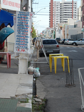frente ao colégio Unificado) e o poder público não faz nada. Uma loja de flores, um bar/restaurante e uma loja de redes simplesmente colocam jarros, mesas e pasmem uma rede no local onde serviria de estacionamento público, coisa já bastante escassa naquela área”. Com a palavra a SMTT para acabar com a privatização da rua. E também a Emsurb que tem o dever de ordenar também as calçadas.
