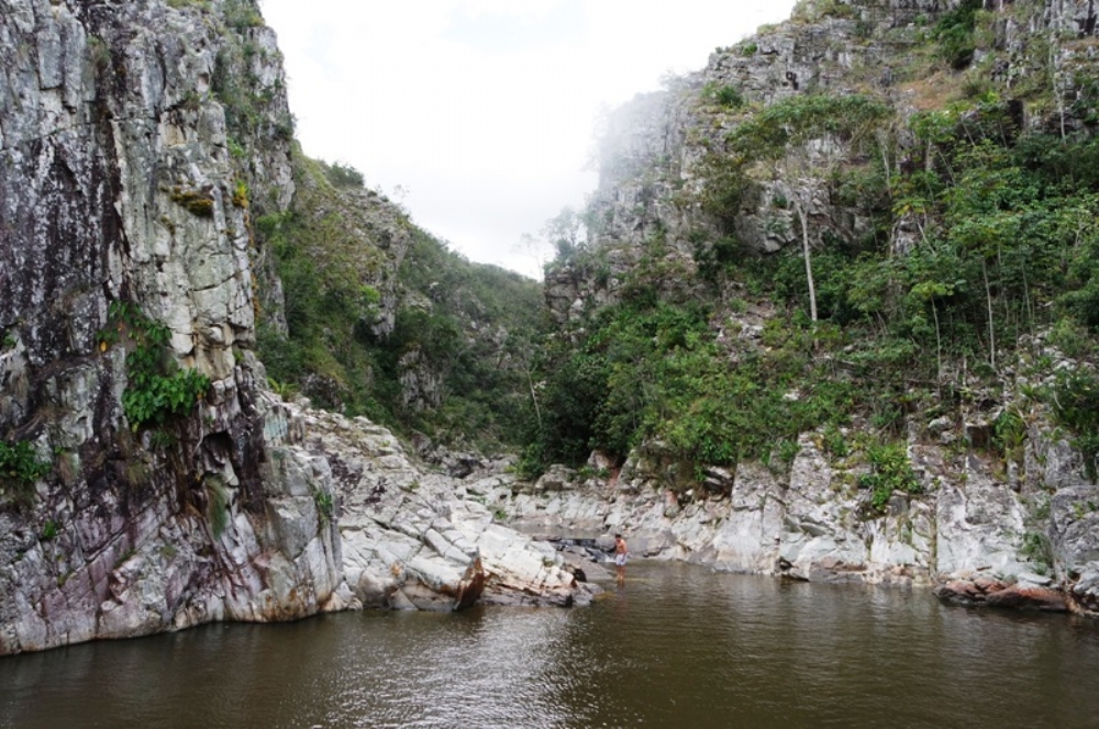 Segue-se por uma estrada de mais de 13km entre cancelas de propriedades particulares aos denominados “mata-burros”, até chegar a um pequeno riacho de águas cristalinas, pelo qual o veiculo sem tração passa sem nenhum problema. Avista-se o que estar por vir: paredões de rochas de mais de 70m de altura. Mas a paisagem ainda é contemplada ao longe, quando passa um desfiladeiro que dá acesso a um pequeno lago. É ali onde se esconde entre rochas o Poço da Ribeira, um pequeno lago de grande profundidade e águas escuras, convidativo ao banho.