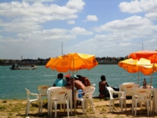 de Telha (SE), guarda um dia de diversão e contemplação da natureza. A prainha fica a pouco mais de 97 km da capital, Aracaju, e tem esse nome por abrigar a adutora da Companhia de Saneamento de Sergipe que capta água para abastecer a região e parte da capital sergipana. Bares à margem do rio São Francisco. Foto: Silvio Oliveira
