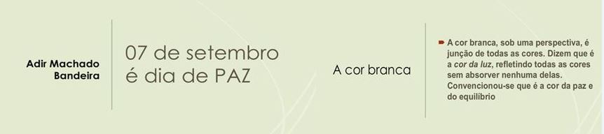 Dia 07, no calçadão da 13 de julho Entre os participantes desse encontro, ficou acordado que o Movimento 07 de Setembro pela Paz precisa levar sua mensagem à sociedade sergipana no próximo feriado do Dia da Independência. E os que acreditam nessa ideia vão realizar uma caminhada no calçadão da 13 de Julho no dia 07 de Setembro às 08h. E se você também acredita que nossa Democracia está envenenada pelo radicalismo ideológico, venha fazer parte dessa corrente do bem, que defende a Paz como ÚNICO instrumento capaz de fazer o Brasil deixar de ser refém de partidarismos irracionais.