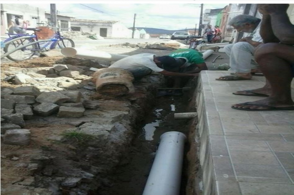 podemos ver que pedreiros da prefeitura trabalham sem nenhum Equipamento de Proteção Individual e com contato direto com esgoto. Mas isso acontece também com o pessoal que trabalha recolhendo o lixo e as que varrem as ruas, a prefeitura não fornece os EPIs aos funcionários. Não aparece um orgão fiscalizador para tomar as devidas providências. Enquanto isso os servidores trabalham com riscos de adquirir doenças ou sofrer acidente de trabalho por falta do EPI.”