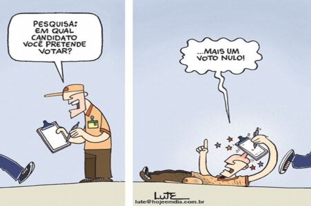 De um eleitor que anulou o voto no 1º turno e vai fazer o mesmo no próximo dia 30: “Não adianta buscar a liberdade de expressão nesta democracia burguesa, num sistema político que nos obriga a votar. Prova isso é que a urna eletrônica não possui a tecla do voto nulo. Portanto, é preciso contestar, dizer não ao que está aí, digitando zero, zero e confirmando”. Homem, vôte!