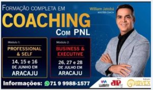 O Instituto Brasileiro de Vida Extraordinária (IBVEX) realiza nos meses de junho e julho, em Aracaju, o 1º Curso de Formação Profissional em Coaching. Ministrado pelo máster coach William Jatobá, um dos principais profissionais da área no Brasil, o curso será realizado em dois módulos: profissional e self e business e executive.
