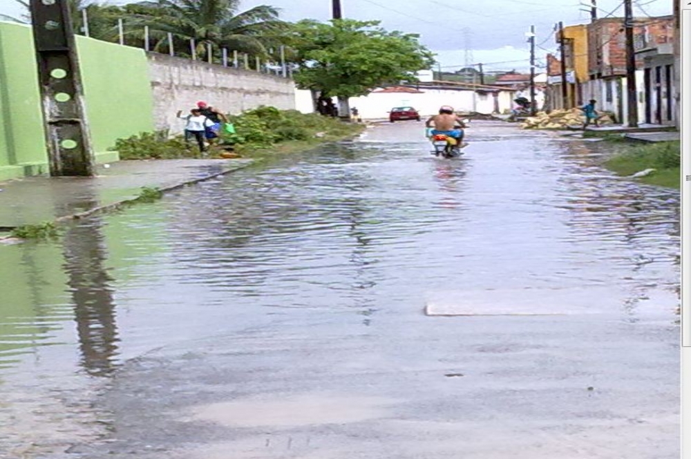 famílias que ficam ilhadas quando chove, e ninguém faz nada para melhorar esse quadro. Essas fotos são da rua principal (entrada do conjunto) esta rua estar com muitos buracos de esgoto abertos no meio da rua, só é transitável um lado e ainda tem uma grande vala que dificulta a passagem de veículos e até mesmo de pedestres. Espero que alguém ao ver essa vergonha tome alguma providência.Foto tirada no sábado 27/10/2012 após 20 minutos de chuva”.