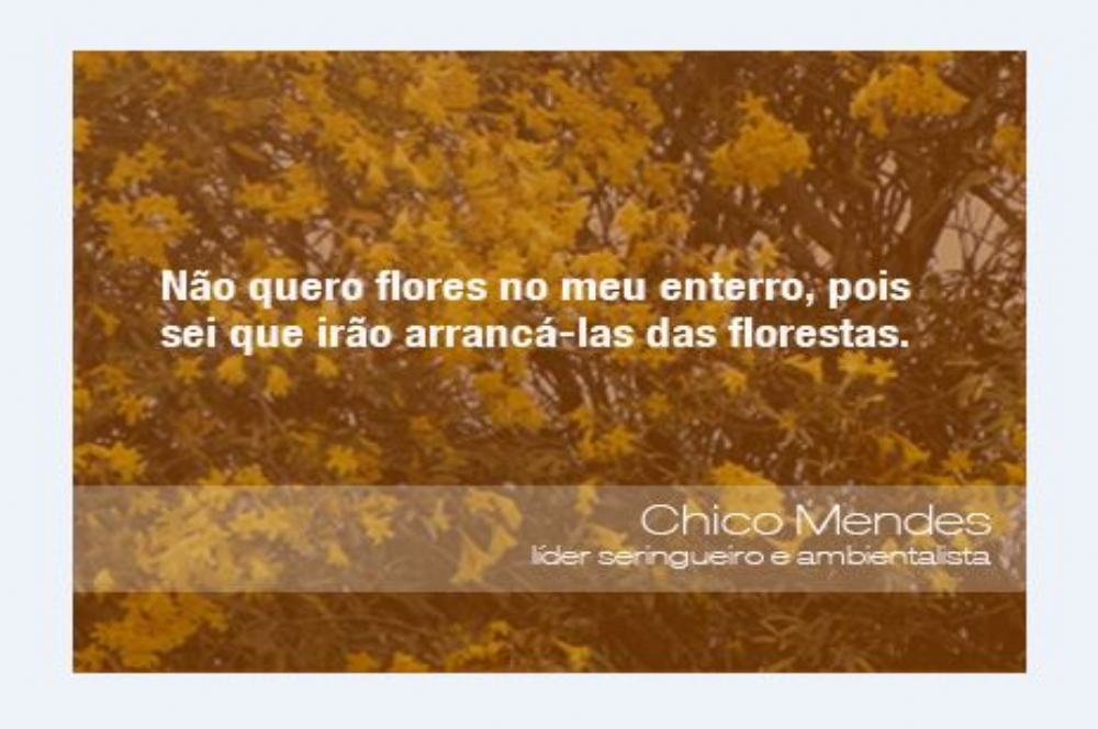 “Não quero flores no meu enterro, pois sei que vão arrancá-las da floresta.”Chico Mendes, seringueiro e ativista ambiental brasileiro, morreu em 22 de dezembro de 1988 (n. 1944).
