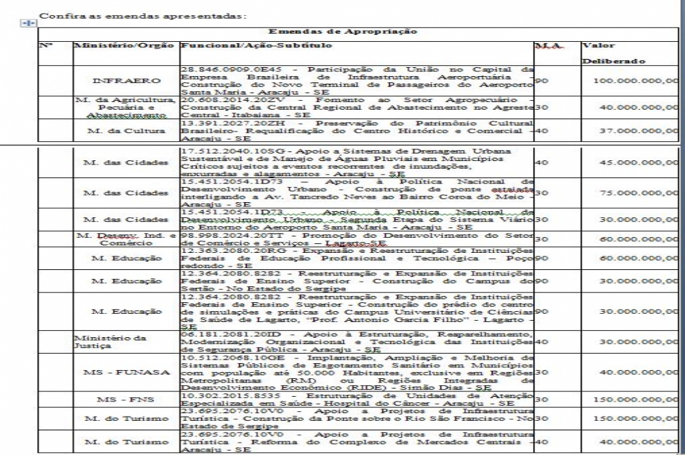 A bancada sergipana no Congresso Nacional apresentou na última nesta terça-feira (20), à Comissão Mista de Planos, Orçamentos