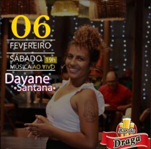 Sábado, 06 de Fevereiro, Dayane Santana no Bar da Draga Dayane Santana se apresenta sábado dia 06 de fevereiro as 19 horas no Bar da Draga Coroa do Meio, na ocasião aproveite para saborear os sons da MPB, Forró, Piseiro e muito mais, sábado dia 06 de fevereiro as 19 horas tem Dayane Santana no Bar da Draga Coroa do Meio.