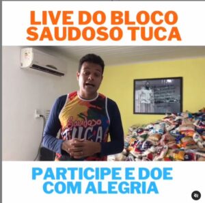 vereador Anderson de Tuca (PDT), já está fixo no calendário carnavalesco aracajuano, acontecendo no domingo que antecede o Carnaval. O bloco já é tradição para os moradores do Bairro Siqueira Campos, que vão às ruas participar dessa folia, e ainda praticam a solidariedade, arrecadando quilos de alimentos para doação. Esse ano, em decorrência ao coronavírus e a pandemia que se faz presente no país, não será possível a realização do bloco de rua de forma tradicional. Na data que aconteceria o bloco, 7 de fevereiro (domingo), o vereador realizará uma live contando a história dos 10 anos do Bloco Saudoso Tuca, e estará recebendo as contribuições para que sejam montadas as cestas básicas e dê continuidade a tradição de ajuda ao próximo. “O bloco já tem 10 anos de tradição e sempre foi gratuito, priorizando a geração de renda e empregos. As camisas do bloco são trocadas por dois quilos de alimento, movimentando mercearias, costureiras e ambulantes que vendem durante a festa. É uma pena não podermos realizar este ano, mas não vamos perder nossa filosofia principal”, diz o vereador.A live será transmitida no dia 7 de fevereiro, através do instagram do vereador https://www.instagram.com/anderson.de.tuca/ , a partir das 14h30.