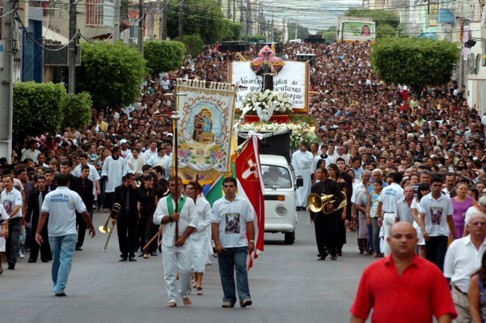 Já existe uma ordem hierárquica nos cortejos religiosos: na frente, em fila indiana, as congregações com os seus estandartes; em seguida o clero, sacristão e coroinhas, na frente do andor enfeitado; logo atrás vem a banda de música (quando tem); separado por um pequeno espaço para dar visibilidade, surge o comboio de políticos (situação e oposição), e na rabeira, o povo em geral, um amontoado de gente sem prestar a menor atenção a reza. Com exceção dos que estão pagando alguma promessa, quase sempre uniformizados, para serem vistos.