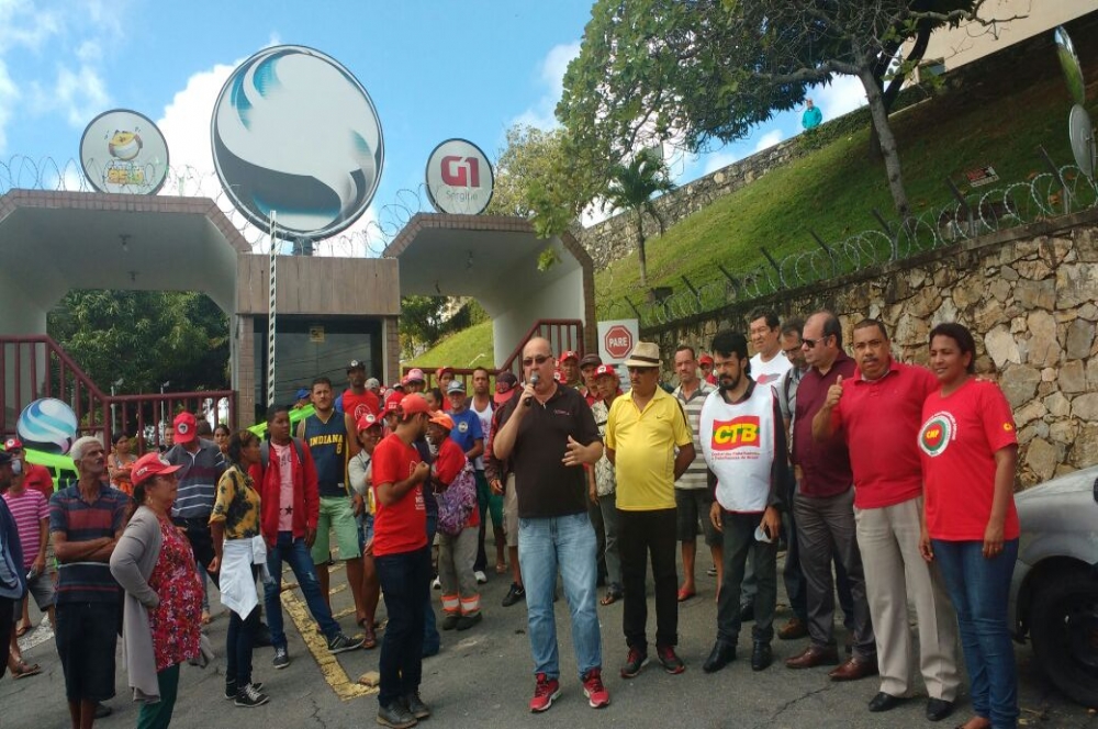 | Sindicalistas em frente a sede da TV Sergipe. |