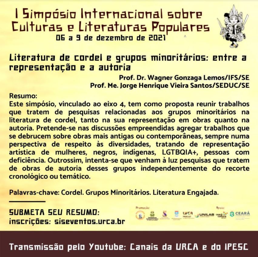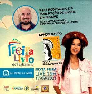 Feira do Livro de Itabaiana. Amanhã, 17, live “A Lei Audi Blanc e a publicação de livros em Sergipe” Nesta sexta-feira, 17, a partir das 19h, no instagram: www.instagram.com/o_escritor_na_livraria você não pode perder mais uma live da Feira do Livro de Itabaiana com a participação do professor Lucas Lamonier, da Academia Glorense de Letras e o lançamento do livro “Duas faces de mim”, da poetisa Emilly Barreto. O debate será em torno da lei Audi Blanc e a publicação de livros em Sergipe.