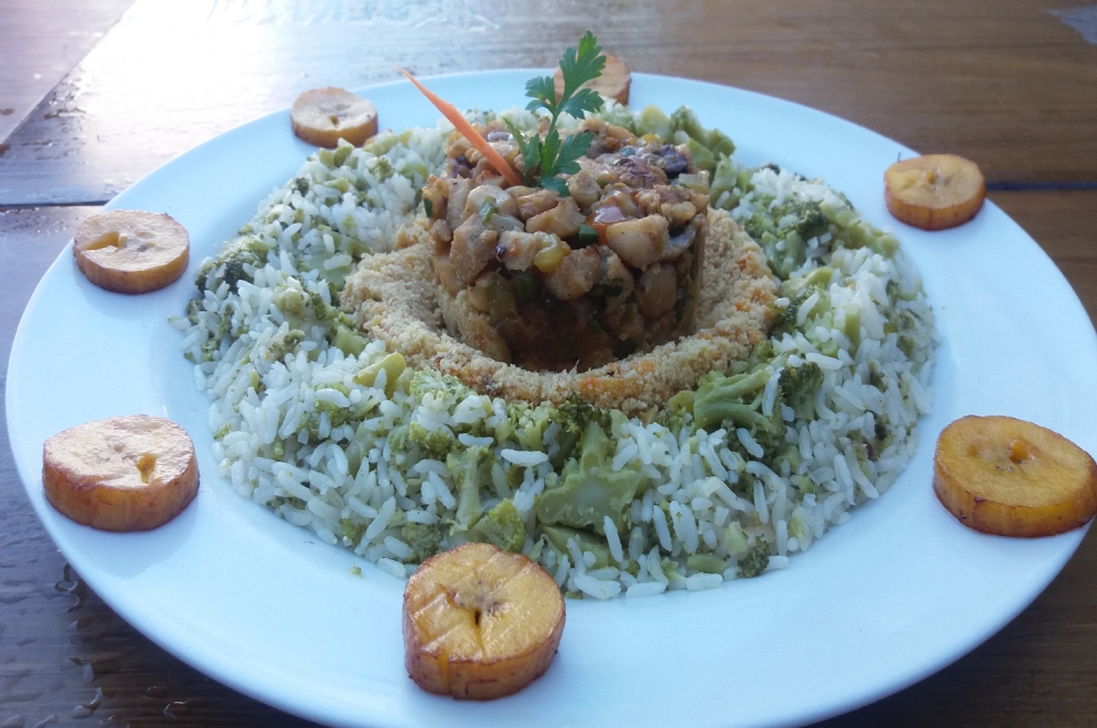 O peixe desfiado, temperado no sal, é servido com arroz de brócolis, farofa de cenoura e banana da terra. O doce sabor casa perfeitamente com o gosto do pescado, bem apreciado na culinária alagoana.