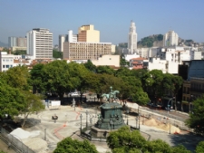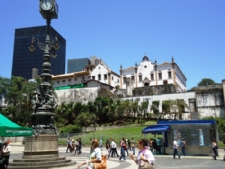 antigo e o moderno com a Igreja da Ordem Terceira de São Francisco Penitente e o Convento de Santo Antônio. De lá avista-se o moderno prédio da Petrobras e as primeiras impressões da Catedral do Rio de Janeiro, uma obra modernosa em meio à aranhas-céu empresarias.      Largo da Carioca, ao fundo, Museu de Arte Sacra. Foto: Silvio Oliveira