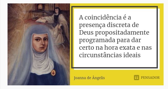 “A coincidência é a presença discreta de Deus propositadamente programada para dar certo na hora exata e nas circunstâncias ideais.” Joanna de Ângelis.