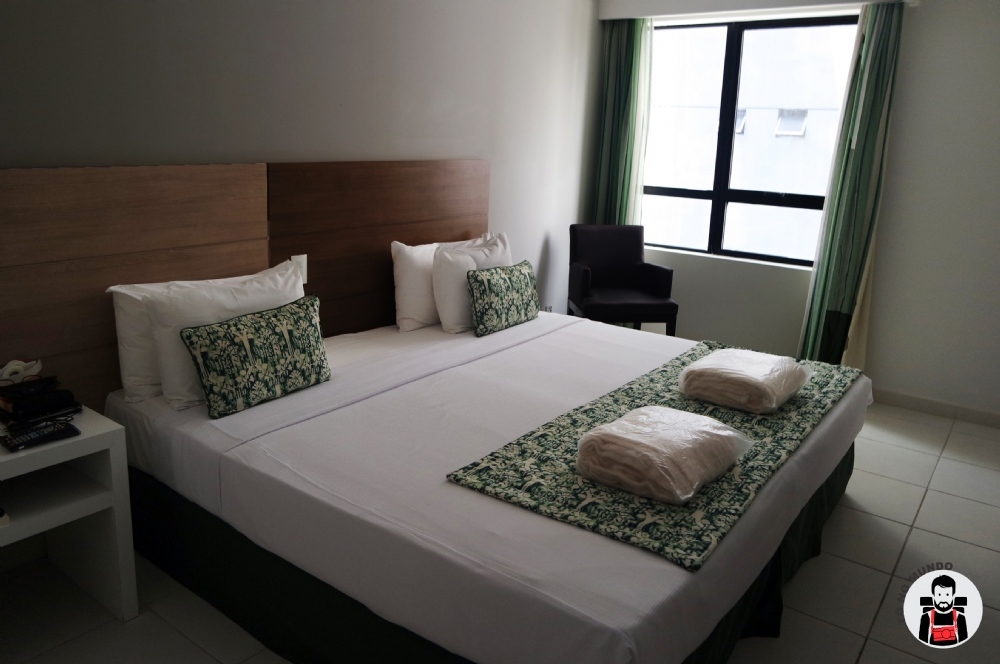 | Um dos aconhegantes quartos do São Salvador Hotéis |