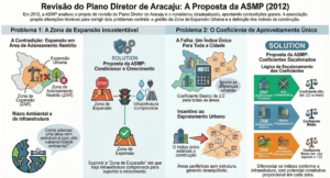 Diante desse contexto abordado nas partes anteriores desse artigo, demonstrando a desatualização do Plano Diretor vigente de Aracaju, que é de 2000, a Associação Sergipana do Ministério Público (ASMP), através deste Colunista, um de seus Diretores à época, elaborou em 2012 uma análise crítica e uma proposta de alteração do Plano Diretor – apresentada no artigo “Plano Diretor: uma contribuição da ASMP para Aracaju”, que foi encaminhada para a Câmara de Vereadores de Aracaju. Tal proposta inicial de revisão partiu de um diagnóstico contundente: o projeto do novo Plano Diretor então em discussão reproduzia praticamente o mesmo macrozoneamento de 2000, sem incorporar dados técnicos atualizados, mantendo incompatibilidades evidentes entre o zoneamento e a realidade urbana, como já abordado anteriormente.