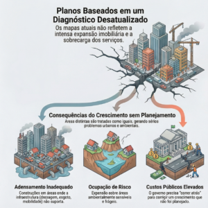 Nenhum macrozoneamento é tecnicamente defensável sem um diagnóstico urbano atualizado e robusto. Diagnóstico que vá além de mapas estáticos e pesquisa bibliográfica, devendo incorporar dados reais sobre: