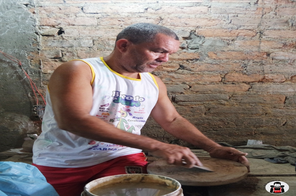 A arte inicia com a retirada do barro cru e comercializado para os artesãos. Nos ateliês, o maquinário é simples, construído com madeira e que funciona à tração dos pés de cada artesão. Um tablado circular na parte inferior, tracionado pelos pés, faz movimentar um eixo da parte superior que, com as mãos, os artesãos moldam vasos, conjuntos de cozinha, além de estruturas que depois passam por lapidação e ganham feições e cores. Os vasos e as molduras ainda em cor escura são transportados para os fornos e são queimados para liberar o oxigênio, ganhando consistência e uma coloração mais clara.