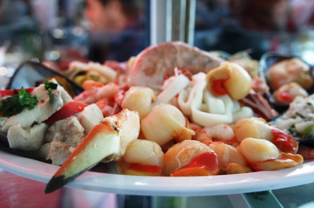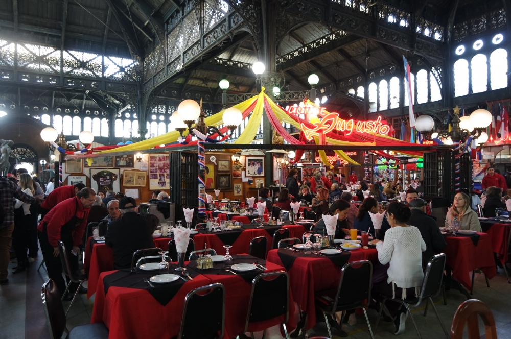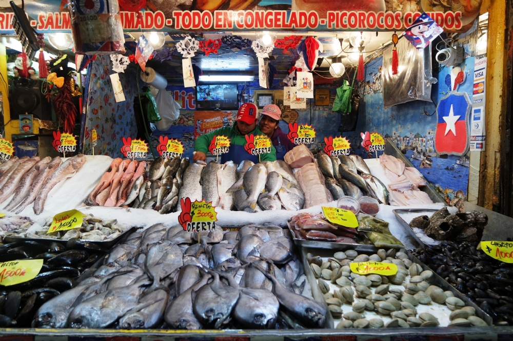 O mercado municipal é bom para conhecer os frutos do mar que dominam a culinária chilena na capital. Os crustáceos, moluscos e afins são vendidos em barraquinhas multicoloridas e expostos nos restaurantes em vitrines. A dica é correr do assédio dos garçons do mercado e degustar de um bom vinho chileno acompanhado de pescados, salmão, trutas, vieiras, polvo ou anéis de lula em pratos diversificados nos restaurantes dos bairros Lastaria e Bela Vista. A culinária chilena é diversifica em seus paladares, mas não deixe de apreciar dos frutos que o Pacífico lhe rendeu.