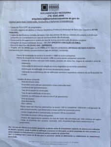 Barra dos Coqueiros: incompetência da Prefeitura ao exigir para expedir alvará de obra ART. Essa exigência deve ser no habite-se da obra, qualquer leigo sabe O município da Barra dos Coqueiros está crescendo muito a arrecadação também, mas os serviços da Secretaria de Obras estão parados no século passado. Não tem estrutura, nem pessoal pra atender da demanda, muito menos a legislação. Um leitor deste espaço está tentando dar entrada na Secretaria de Obras em um projeto de construção, para obtenção do Alvará de Construção e de forma equivocada eles exigem que entregue a ART (Anotação de Responsabilidade Técnica) do responsável pela execução da obra. Porém, neste momento a pessoa que está pedindo o alvará não sabe quem será o responsável, não decidiu ainda, já que o Alvará me dá o prazo de 2 anos pra construir. Ou seja vai decidir isso lá na frente… A ART de execução, deve ser exigido no momento da obtenção do Habite-se da obra… não no Alvará… é muita incompetência. Veja o documento emitido pela Secretaria de Obras no print ao lado.