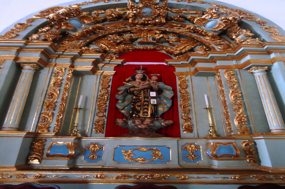 Observe os detalhes bem mais simples do que as outras igrejas. Esta última era permitida apenas para negros. O altar não tem tanta imponência e só há uma torre bem menos longínqua.
