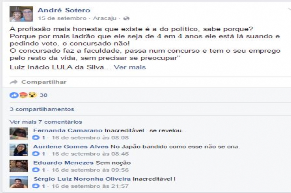 Pelos grupos de WhatsApp vários petistas lembraram que o médico é antipetista e só vivia na página do Facebook pessoal batendo em Lula e Dilma. Até o compartilhamento de uma postagem de uma bandeira do PCdoB com as inscrições foice, martelo e picareta (Lula) segurando a bandeira foi divulgada nos grupos de WhatsApp.