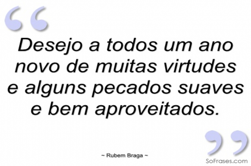 “Desejo a todos um ano novo de muitas virtudes e alguns pecados suaves e bem aproveitados.” Rubem Braga, escritor brasileiro, morreu em 19 de Dezembro de 1990 (n. 1913).