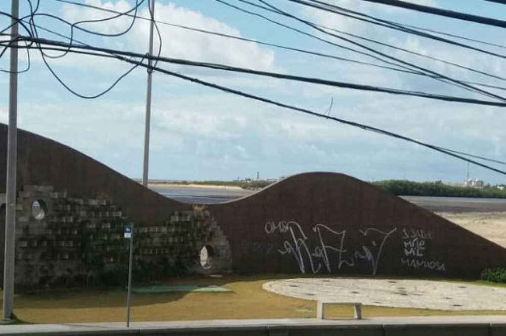 competindo com a PM, deixando de lado as praças e monumentos. A foto lado foi enviada por um leitor e mostra o monumento do calçadão da Praia Formosa inaugurado há poucos meses pichado.
