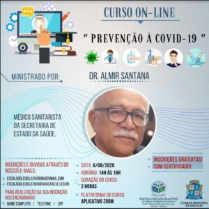 “Prevenção à Covid-19″, curso online hoje, 06/08, às 14h Prevenção à Covid-19″ é o tema do