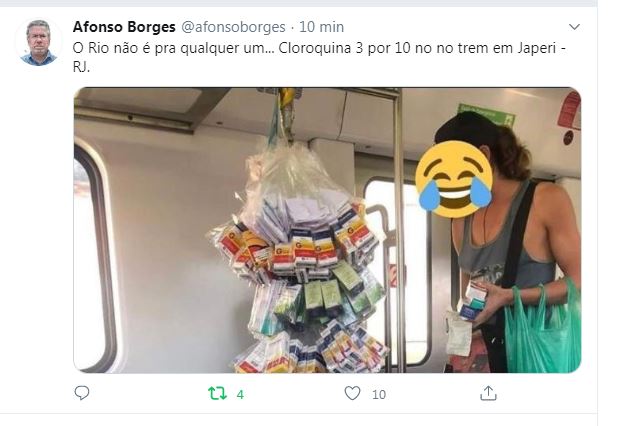 www.twitter.com/afonsoborges O Rio não é pra qualquer um… Cloroquina 3 por 10 no no trem em Japeri – RJ.