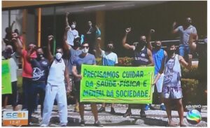 donos de academias mostram força em ato. CREF20/SE entra na luta E ontem, 05, pela manhã, o movimento “Somos essenciais Sim”, formado por profissionais de educação física, de artes marciais, de dança e donos de academias realizaram um ato onde mostraram força com mais de 60 integrantes em frente ao Palácio de Despachos do governo do Estado na Avenida Adélia Franco. A luta é para que o governador Belivaldo Chagas se sensibilize e autorize a reabertura das academias e centros de atividades físicas de acordo com todas as medidas de segurança e todos os protocolos que já foram apresentados ao governo. Em Sergipe estima-se que são cerca de 600 academias com registros que empregam direta e indiretamente centenas de profissionais. O presidente do Conselho Regional de Educação Física de Sergipe (CREF20/SE), Gilson Dória, se somou a luta e conseguiu abrir um diálogo com uma reunião marcada para hoje pela manhã.