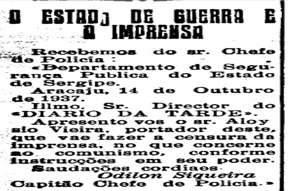 | Publicado aracajuano Diário da Tarde em 15 de outubro de 1937 |