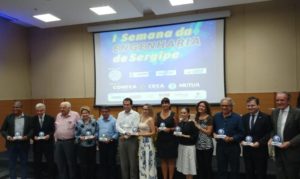 Os homenageados Em seguida  foram realizadas as homenagens. Primeiro as dois  engenheiros civis im memoriam, José Rollemberg Leite, ex-governador de Sergipe e o José Carlos Silva, que fundou a Cosil. José Rollemberg Neto recebeu a homenagem prestada  pelo avô e as filhas de  José Carlos Silva, Danusa e Jéssica a homenagem prestada ao pai. Outros dois engenheiros homenageados o ex-governador João e  Luiz Antônio Mesquita Teixeira, impossibilitados por problemas de saúde foram representados  respectivamente pelo ex-deputado José Carlos Machado e pelos filhos. O arquiteto Paulo Rehm e os engenheiros Carlos Henrique Carvalho e Luciano Barreto Franco receberam pessoalmente as homenagens prestadas. O SEBRAE, o CREA/SE e o Clube de Engenharia de Sergipe também foram homenageados.