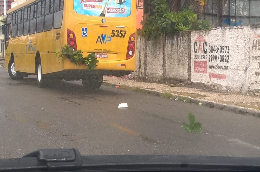 Código de Trânsito não é cobrado aos ônibus. Falta o básico: triangulo de sinalização A foto ao lado enviada por um leitor mostra que a SMTT não deve fazer vistorias nos ônibus em Aracaju. Ou será que o CTB mudou e ao invés do dispositivo de sinalização luminosa e refletora de emergência, agora são galhos de árvores utilizados.Onde estarás os "triangulo" do coletivo? Será que a SMTT faz vistorias nos ônibus?