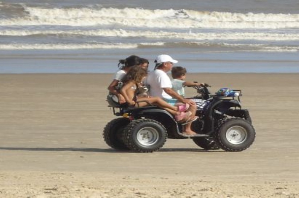 impunidade e da falta de fiscalização chegou ao seu limite. Quadriciclos em alta velocidade, guiados por crianças, quadriciclo onde um homem adulto transporta mais 4 sobre o veículo, ressalvando-se que eram crianças expostas ao risco, uma caminhonete dava cavalo de pau e tudo bem perto dos banhistas, das crianças. Sempre acontece, mas este domingo foi demais!!! Passou do limite da tolerância!”
