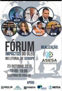 partir das 13 h, no Auditório do CREA. O objetivo é apresentar visões de especialistas em suas respectivas áreas sobre as causas, efeitos e soluções quanto ao surgimento de manchas de óleo que atingem o litoral nordestino, em especial de Sergipe. A inscrição pode ser realizada através do endereço eletrônico: https://doity.com.br/forum-impactos-do-oleo-no-litoral-de-sergipe, a contribuição será de apenas 1 Kg de alimento não perecível para auxiliar pessoas em situação de vulnerabilidade social.