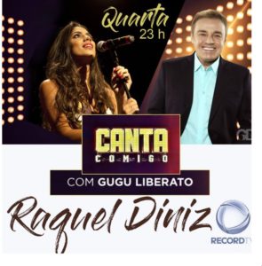 Raquel Diniz no Canta Comigo da TV Record E nesta quarta-feira, 23, a partir das 23h, no programa Canta Comigo exibido nacionalmente pela rede Record terá a participação da cantora sergipana Raquel Diniz. O programa apresentado por Gugu Liberato tem uma grande audiência e vem revelando novos cantores. Vale à pena conferir!